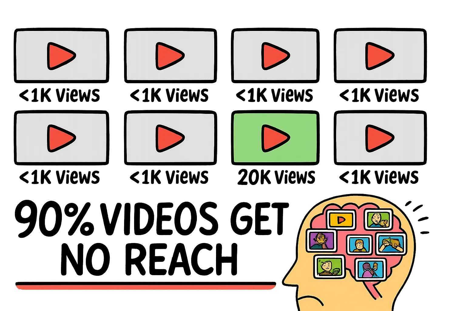 The research shows that 90% of videos on YouTube get fewer than 1,000 views. But here's what the data doesn't show - the psychological impact on your audience.When your subscribers see the same topic covered by multiple creators they follow, they start to tune out.