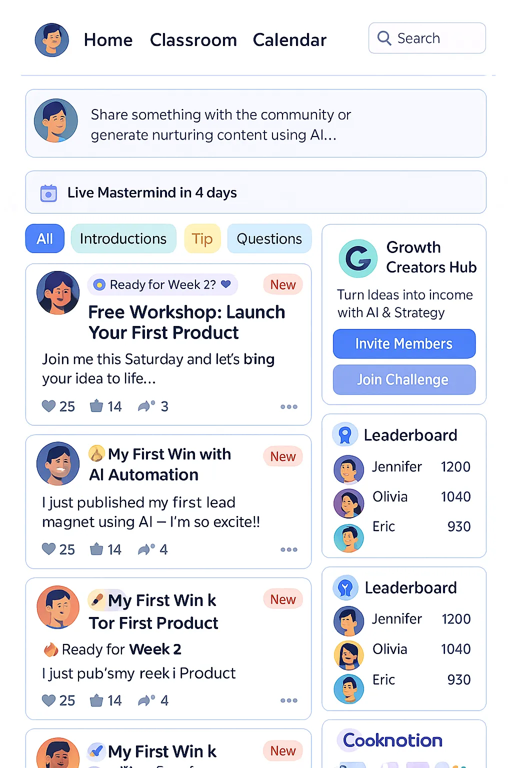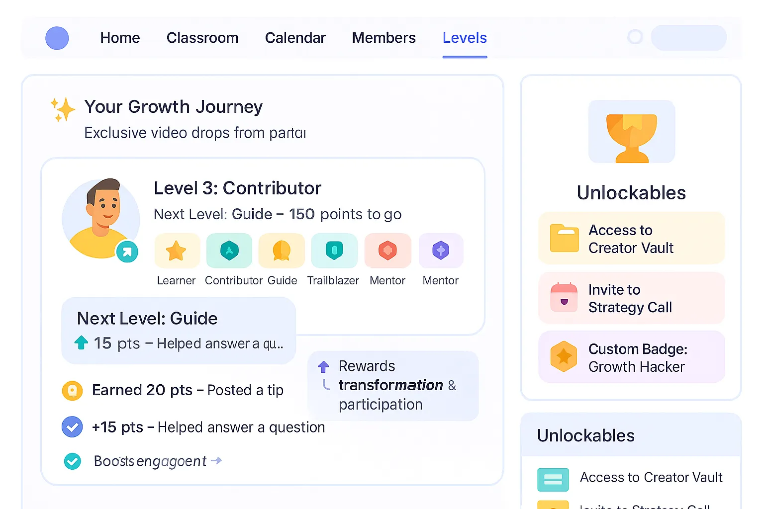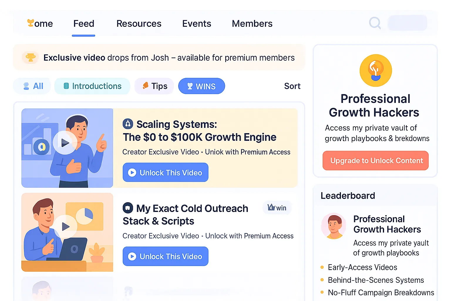 No bait-and-switch "free webinar" tactics Instead, you get: Value-first content portal connected to your video, reel, or post Personalized welcome message & one-click join logic Smart redirect to gamified onboarding & content previews
