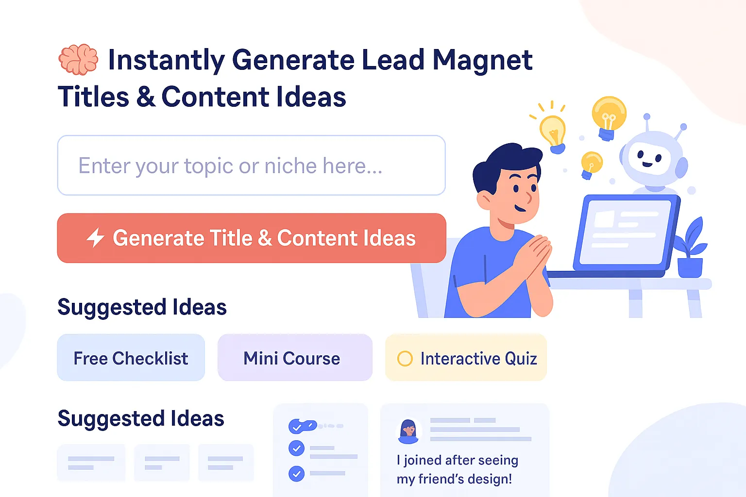 Quickly generate high-converting lead magnets without writing from scratch — just pick, tweak, and launch.