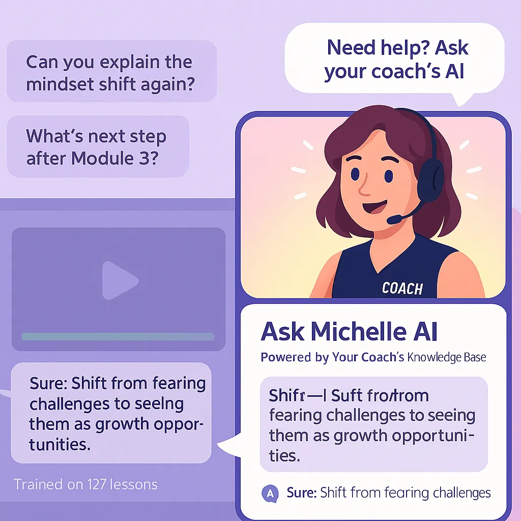 Delivers responses based on your own frameworks, FAQs, and lessons—no generic AI fluff.