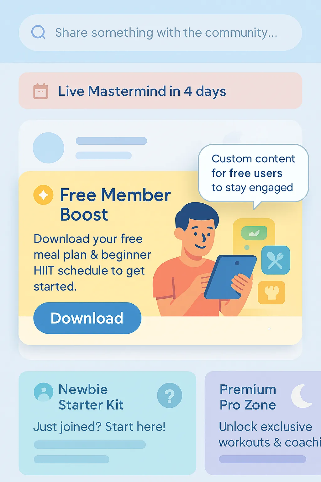 - Personalized sticky content based on user tier (Newbie, Free, Paid)