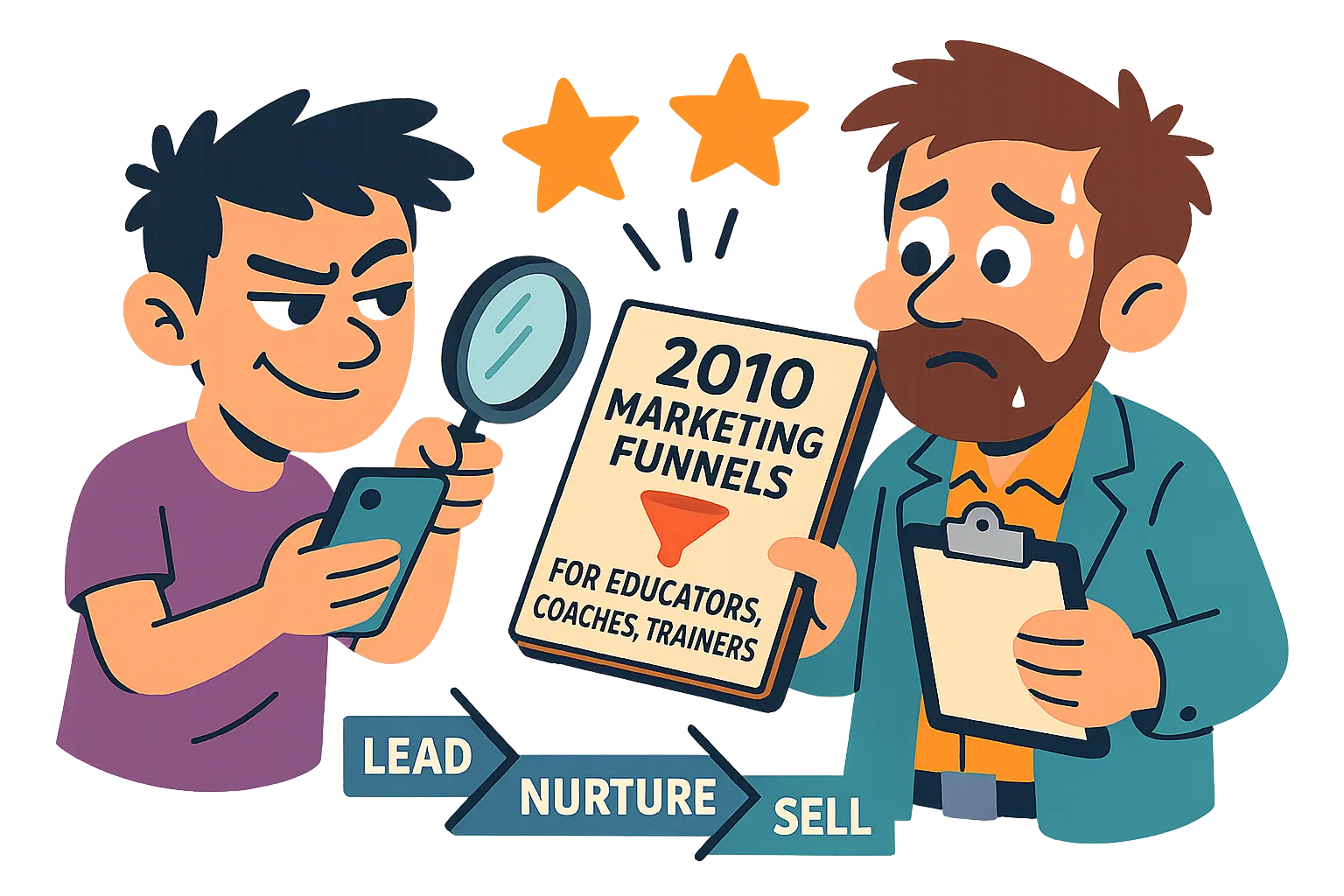 Traditional marketing funnels were designed when online education was novel. Back then, learners were excited to download a PDF guide in exchange for their email address. They'd patiently work through a 7-part email sequence before making a purchase decision. Competition was sparse, and your audience hadn't seen the same "free training" bait-and-switch tactics hundreds of times